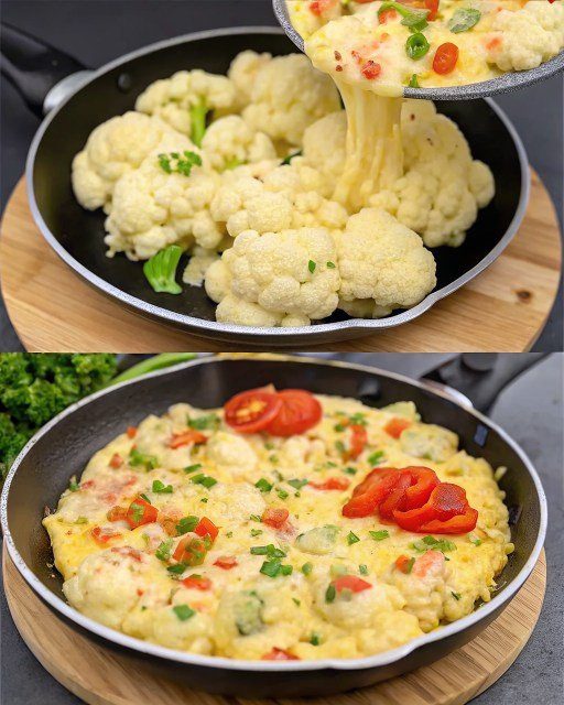 Dit gerecht combineert knapperige bloemkoolroosjes met sappige tomaten en zachte, romige eieren. Het resultaat is een kleurrijk, voedzaam en eenvoudig te bereiden diner dat ideaal is voor drukke dagen. Of je het nu serveert als lichte avondmaaltijd, lunch of bijgerecht bij vlees of vis, deze combinatie biedt zowel smaak als gezondheid in één gerecht.